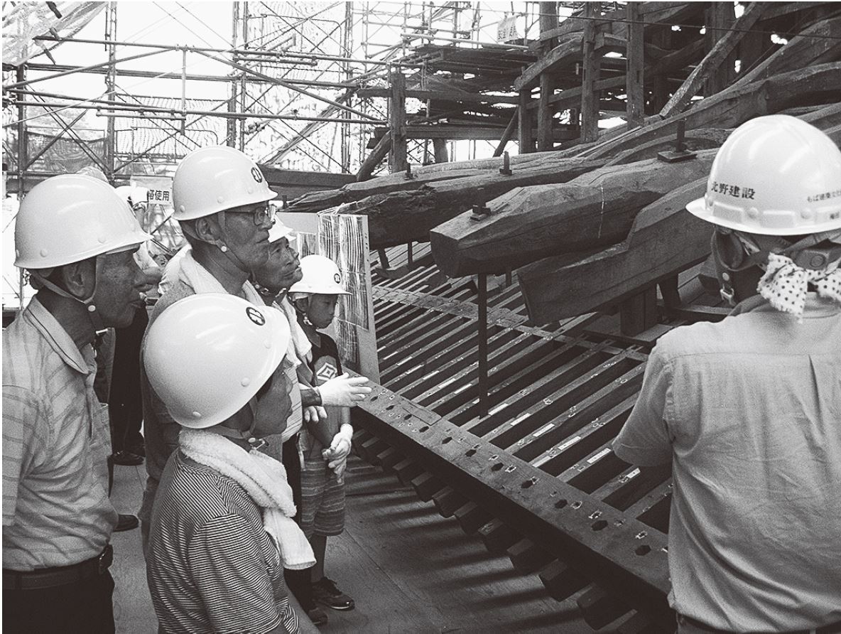 それにしても、一つ一つの柱や板に迷子札のような位置を示すプレートを張り、傷みの程度を見分け、一本一本の釘を抜き、その場所を示す印をつける作業を黙々とこなしている職人の皆さんの根気に頭が下がりました。