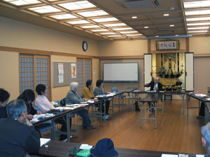 それが平成十六年の三月頃に別院が母体となり月に一回の俳句講が開かれると言う話を聞き、早速寄せていただきました。五智光源寺さんの前御住職、堀前小木菟(こもくと)先生の御指導の元に男女合わせて二十人位。句会場は御食堂で句会を始める前には皆阿弥陀様に手を合わせ「真宗宗歌」終わりには「恩徳讃」で句会は終わります。