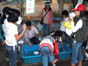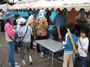 | 現在は町内会の露店が並び買い物に来る子どもたちでにぎわっている |