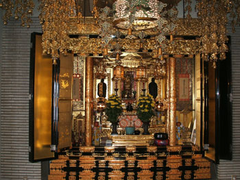 | ロビーにある御内仏を中心に、毎年「有縁講」が開催される。 |